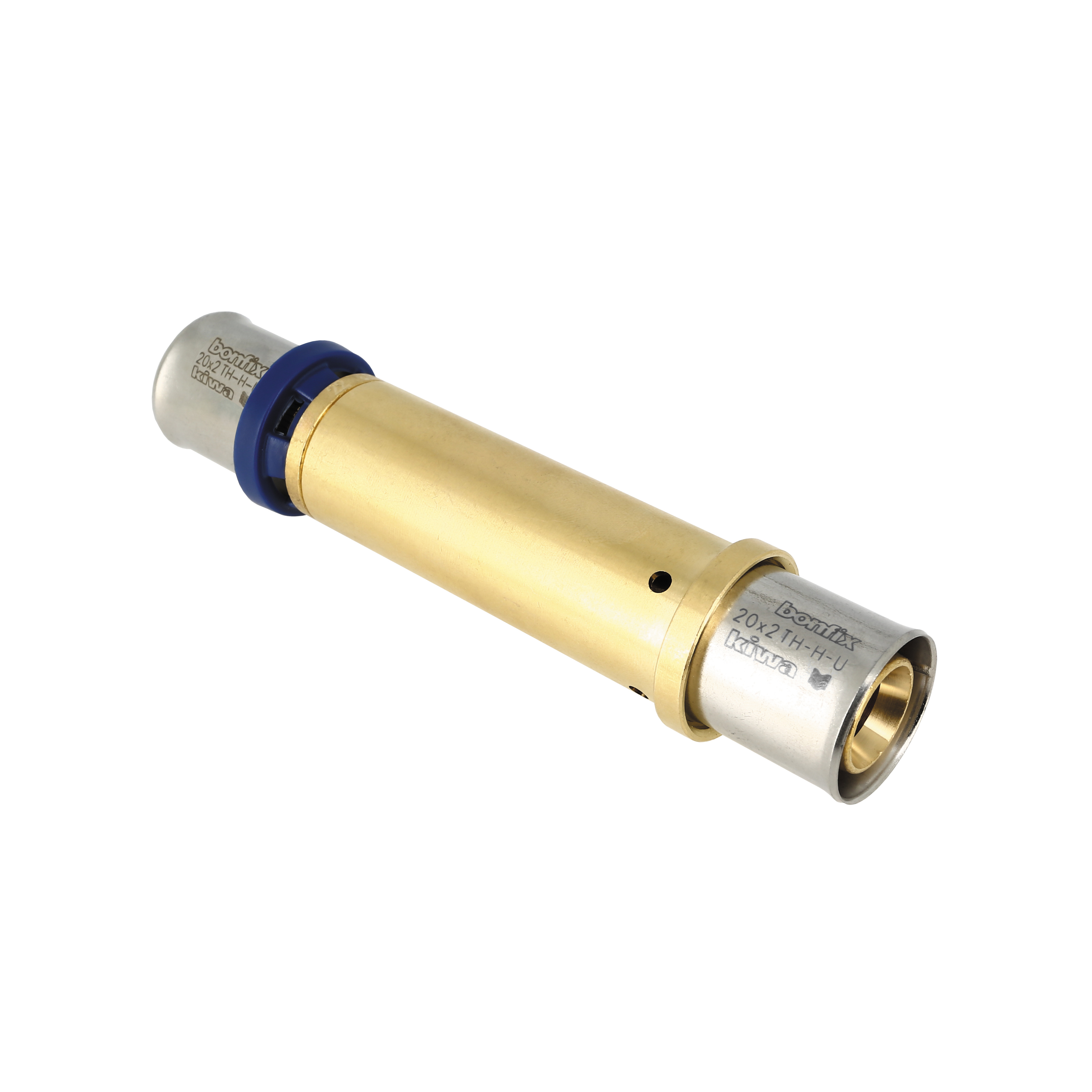 De knelfitting bestaat uit 3 delen: het huis (1), de knelring (2) en de wartelmoer (3). Deze wordt compleet gemonteerd geleverd om hem vervolgens op eenvoudige wijze aan te kunnen sluiten op de koperen buis.