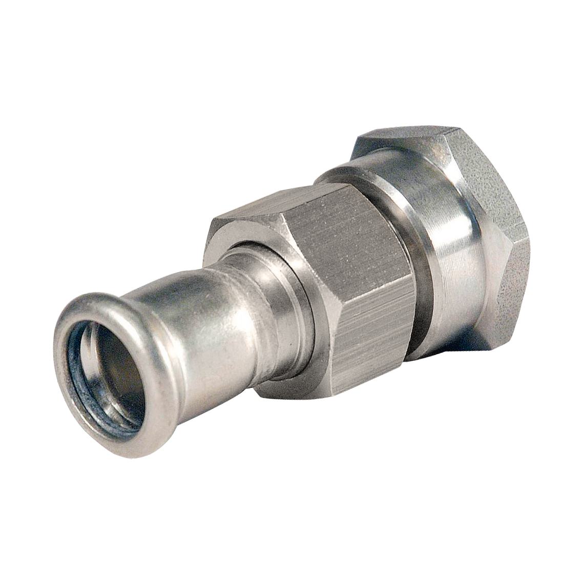 3-delige koppeling vlakdichtend. Binnendraad (Rp) x press (m-profiel).