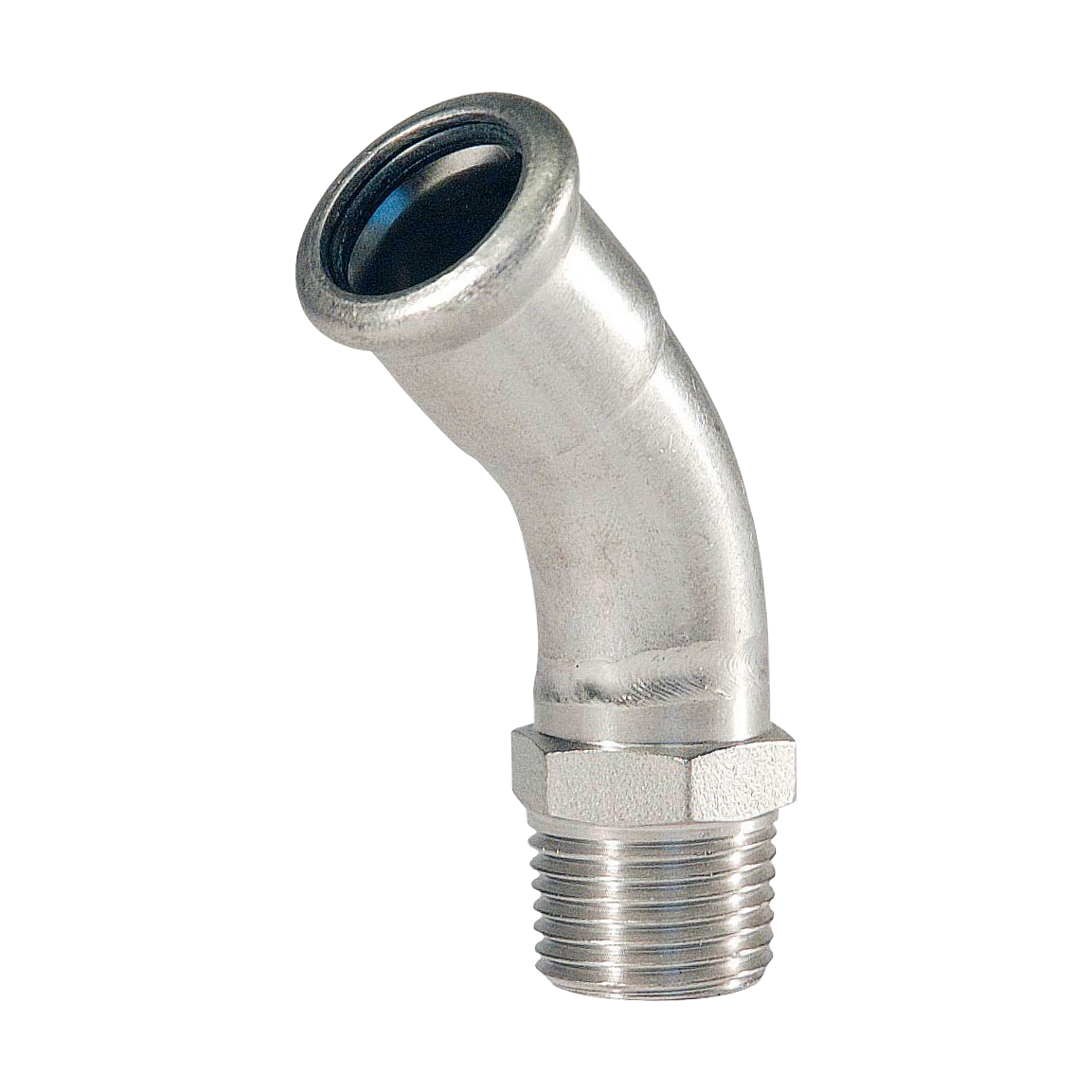 Bocht 45°. Conische buitendraad (R) x press (m-profiel).