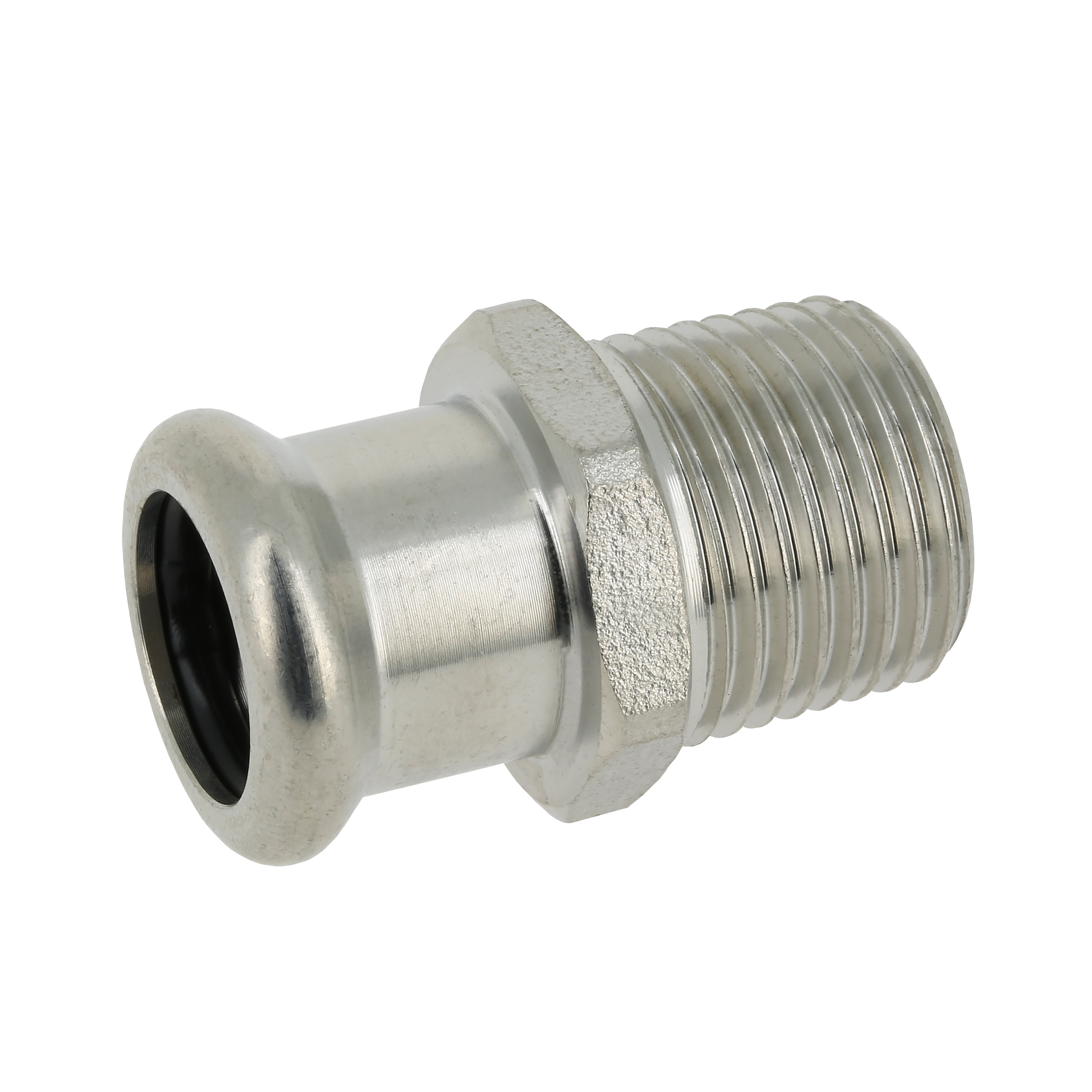 Puntstuk. Conische buitendraad (R) x press (m-profiel).
