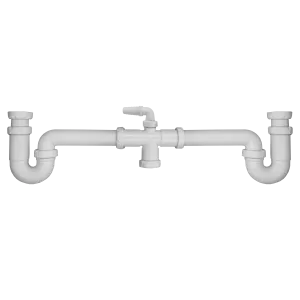 Sifon universeel voor dubbele spoelbak. Met afsluitbare vaatwasmachine aansluiting.