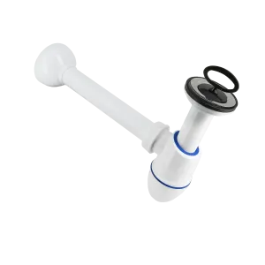 Plugbekersifon kunststof. Met muurbuis, rozet, rubber stop.