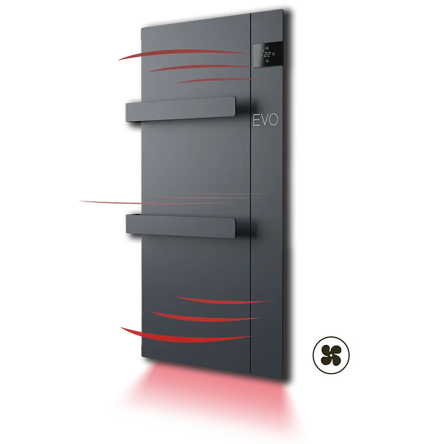 De DRL E-Comfort Onsen Blow is een elektrische badkamerradiator met geïntegreerde ventilator voor snelle en gelijkmatige warmteafgifte.