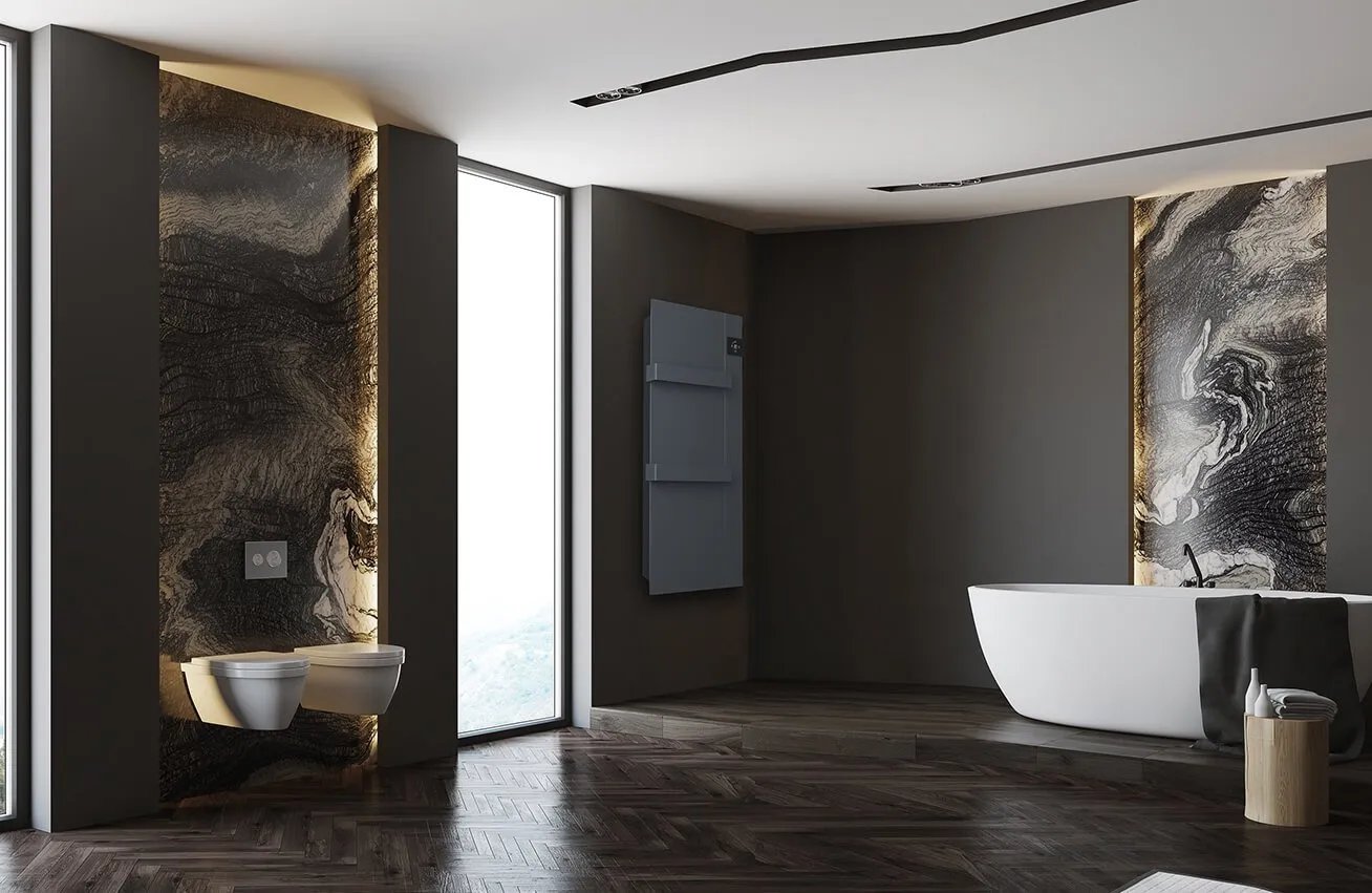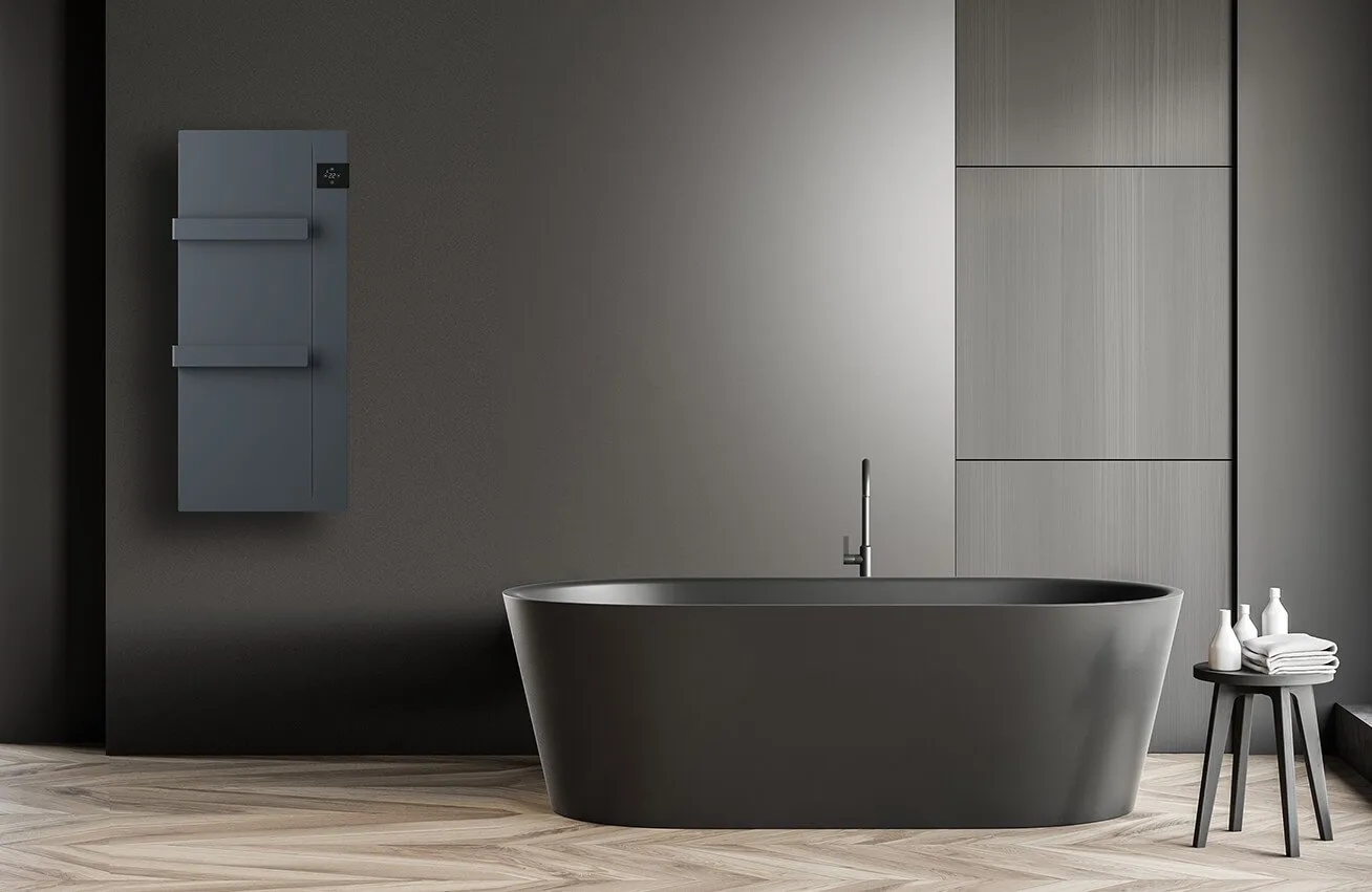 ONSEN radiatoren zijn leverbaar in 2 kleuren, in mat gestructureerd wit RAL 9003 of antraciet grijs RAL 7024, in vermogen 750 Watt, inclusief 2 fraaie handdoekhouders