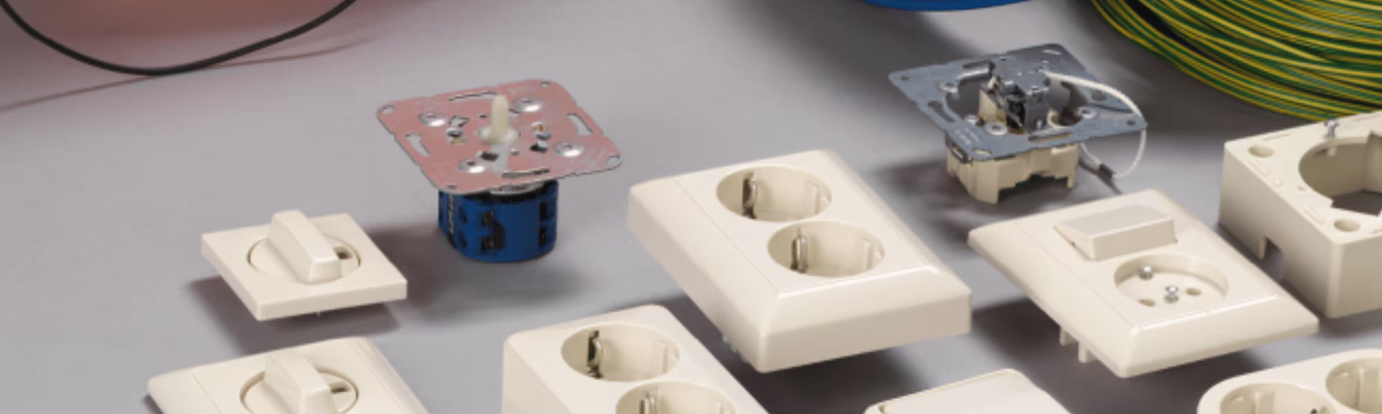 Schakelmateriaal en stopcontacten in verschillende stijlen en uitvoeringen