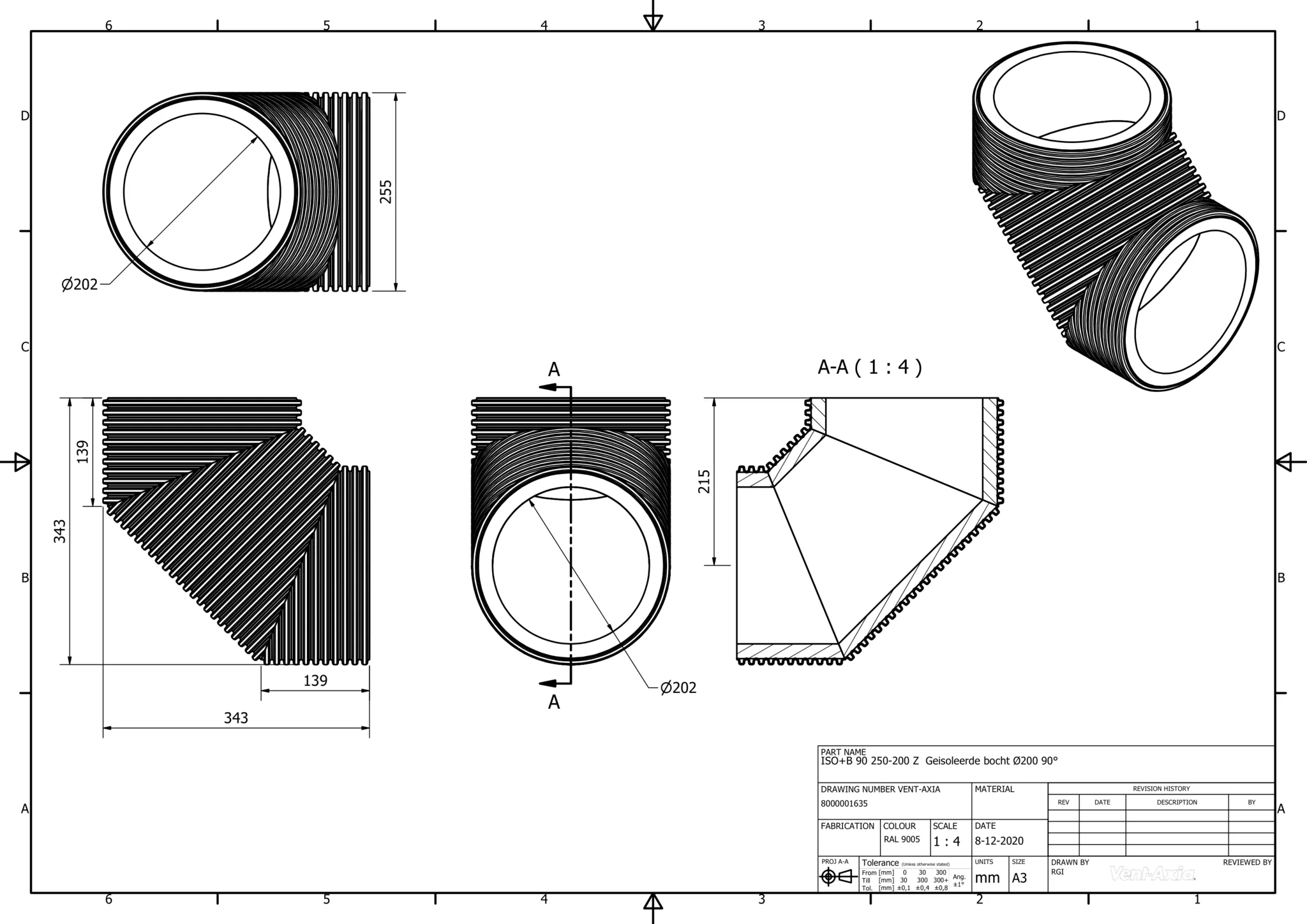 Vent-Axia ISO+B 90 250-200 Z / Geisoleerde bocht Ø200 90°